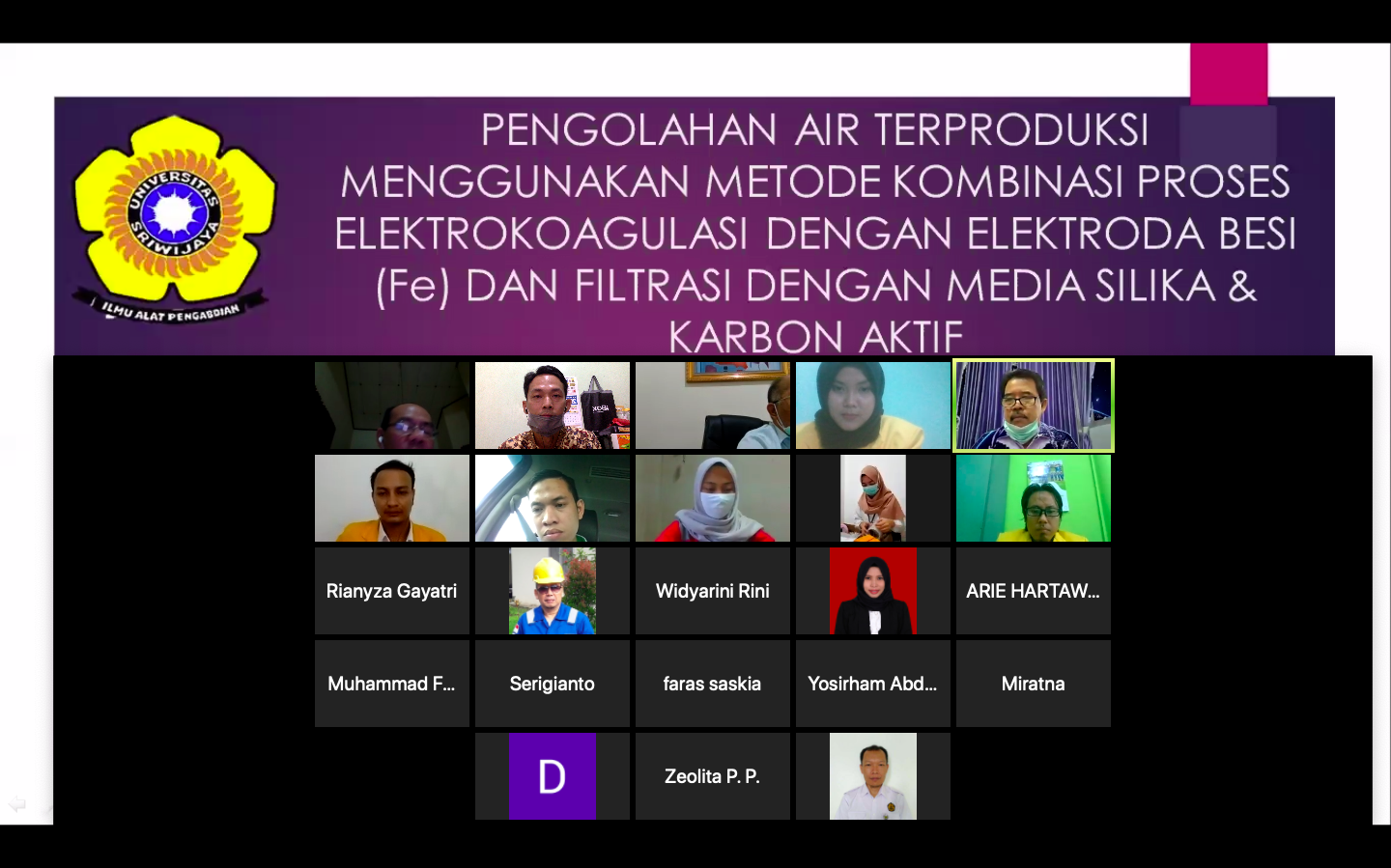 Seminar Hasil Penetian tanggal 08 Juni 2020 secara daring/online menggunakan aplikasi zoom oleh Mahasiswa PS Magister Teknik Kimia bernama Rizza Fadillah Fitri/03012681822003 BKU Teknologi Lingkungan
